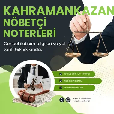 Kahramankazan ilçesinde hizmet veren güncel nöbetçi noterler. Yeni nöbetçi listesi bekleniyor.