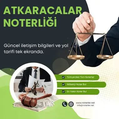 ATKARACALAR Noterliği’nin iletişim, adres, telefon numarası ve çalışma saatleri hakkında detaylar.