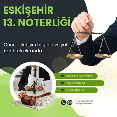ESKİŞEHİR 13. Noterliği’nin iletişim, adres, telefon numarası ve çalışma saatleri hakkında detaylar.