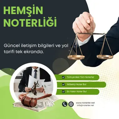 Hemşi̇n Noterliği’nin iletişim, adres, telefon numarası ve çalışma saatleri hakkında detaylar.