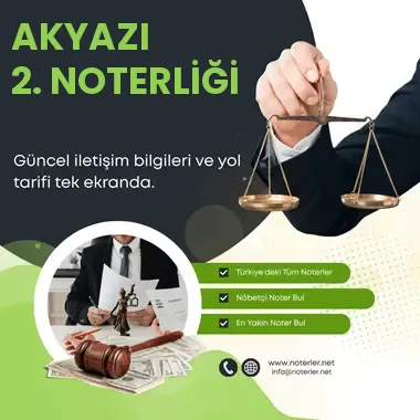 AKYAZI 2. Noterliği’nin iletişim, adres, telefon numarası ve çalışma saatleri hakkında detaylar.