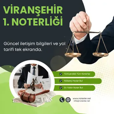 VİRANŞEHİR 1. Noterliği’nin iletişim, adres, telefon numarası ve çalışma saatleri hakkında detaylar.